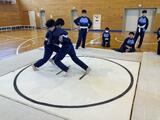 1年B組 体育の授業での相撲の様子です。みんな楽しそうに取り組んでいました。