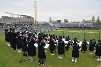 先日行われました、日本ハムファイターズの試合での応援演奏(白百合高校と合同)の様子です。