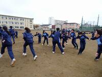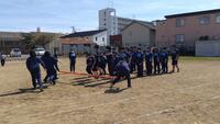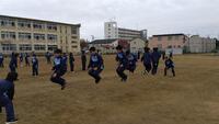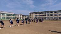 1年生、体育祭の練習(つなげよう友達の輪、長縄跳び)の様子です。
