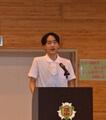 先日、全校弁論大会が行われ、各学級の代表生徒が全校生徒の前で発表しました。発表生徒は、各学級の代表として堂々と発表していました。