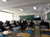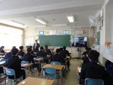 2年生で行われた、私立高校進路学習会の様子です。私立高校の先生に来ていただき、各学校の特徴を説明していただきました。みんな真剣に聞いていました。