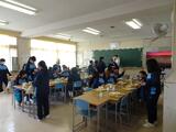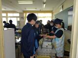 1年生の給食配膳の様子です。1年生も徐々に慣れてきて、給食準備も早くなってきています。