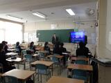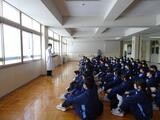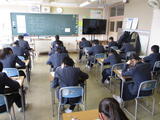 2年生で行われた、私立高校進路学習会の様子です。私立高校の先生に来ていただき、各学校の特徴を説明していただきました。みんな真剣に聞いていました。