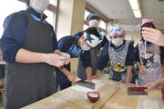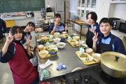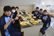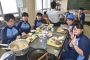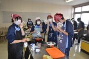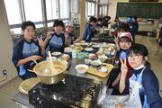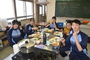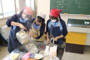 1年A組での調理実習の様子です。自分たちで作ったものを食べてるときの笑顔は最高です。