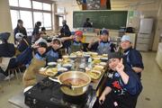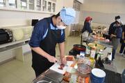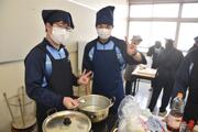 1年C組の調理実習の様子です。みんなで協力して作り、食べる料理は最高です。