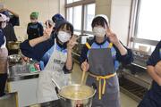1年B組の調理実習の様子です。みんないい笑顔です。