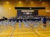 公立高校の受験に向けた前日集会の様子です。明日の受験では、万全の状態で臨み、今までの努力で培ってきた力をを精一杯、発揮してきて欲しいと思います。